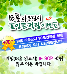 18Ȧ ¶ó¿îµù½Ã Æ÷ÀÎÆ® Àû¸³ À̺¥Æ® !! 18Ȧ ¶ó¿îµù½Ã 90Æ÷ÀÎÆ®¸¦ ÀÌ¿ë À¯Àú¿¡°Ô Áï½Ã Àû¸³Çص帳´Ï´Ù. 1°ÔÀÓ(18Ȧ ¿Ï·á½Ã) -> 90P Àû¸³ ¸¹Àº ÀÌ¿ë ¹Ù¶ø´Ï´Ù.